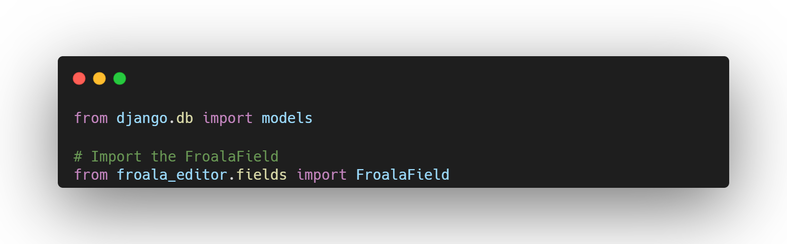 2. Weโ€™ve integrated Froala inside our application by utilizing the built-in support it offers for Django.ย