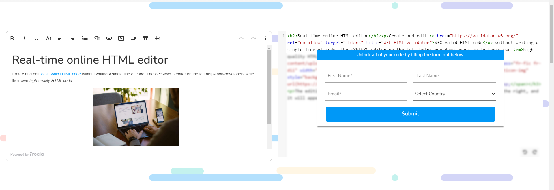 Froala is a WYSIWYG HTML Editor that makes formatting easier on websites that require content to look pleasing.ย