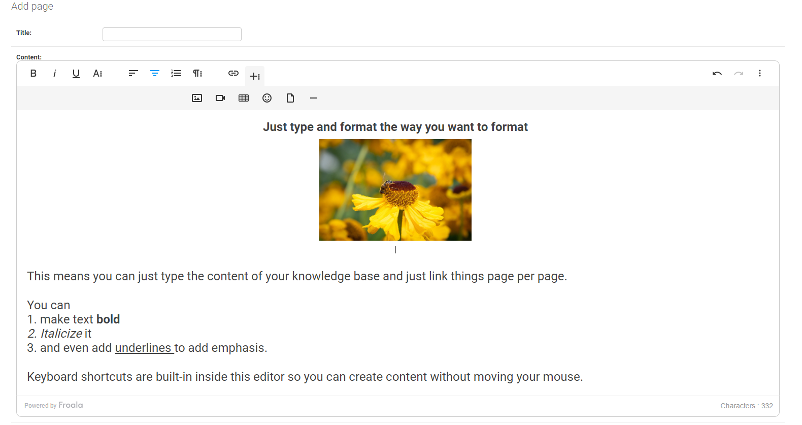As you can see, the text that I copied from this editor reflected in Froalaโ€™s editor with all the formatting included. This means that formatting your knowledge base will become effortless as you can just utilize Froalaโ€™s built in WYSIWYG Editor to make your content look good and pleasing to the eyes.ย