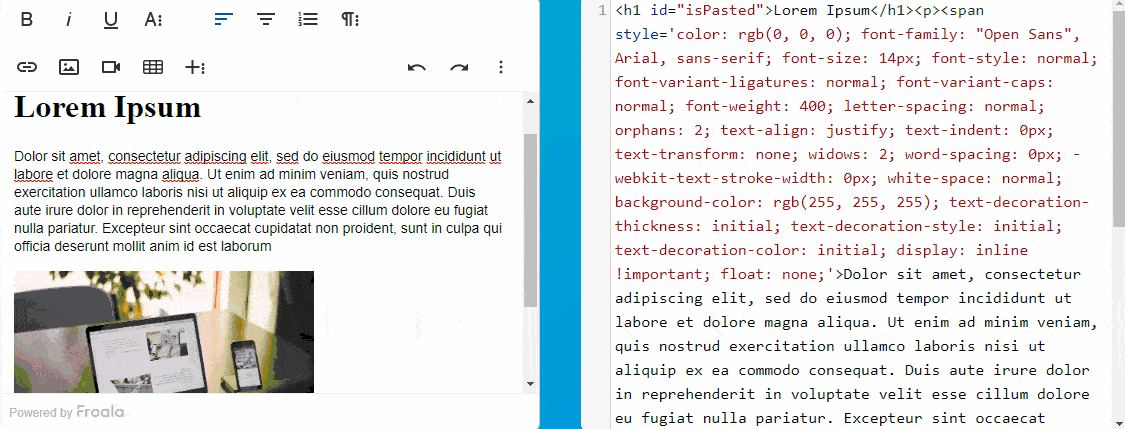 - With Froala, you may directly edit HTML tags for advanced customization.