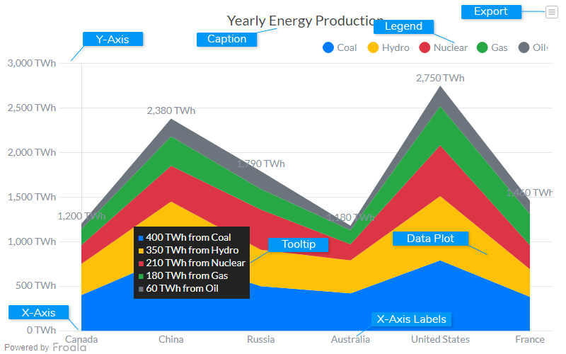 For a detailed list of attributes, refer to the Stacked Area Chart attributes page.{