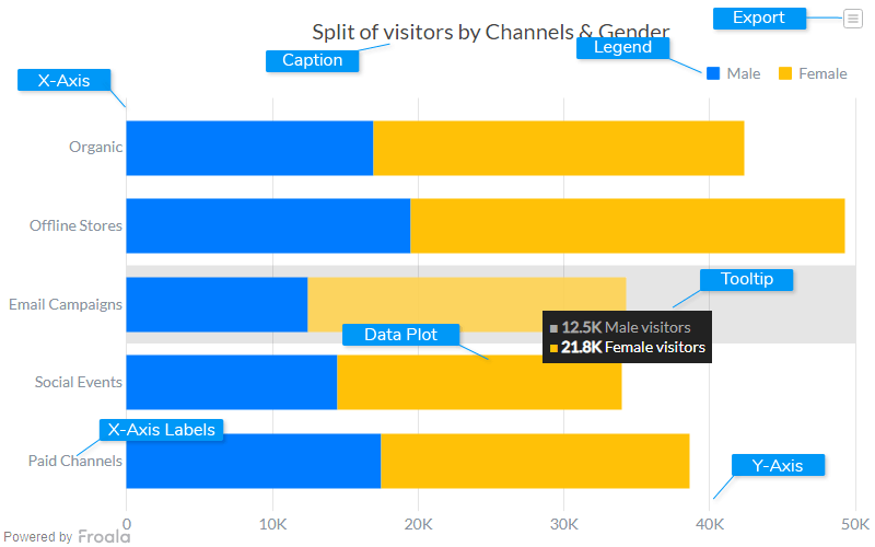 "caption": "Split of visitors by Channels & Gender",