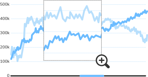 Zoom, scroll, and pan through Zoom Scatter charts, for better insights into individual data plots, or compare between two series of data values.